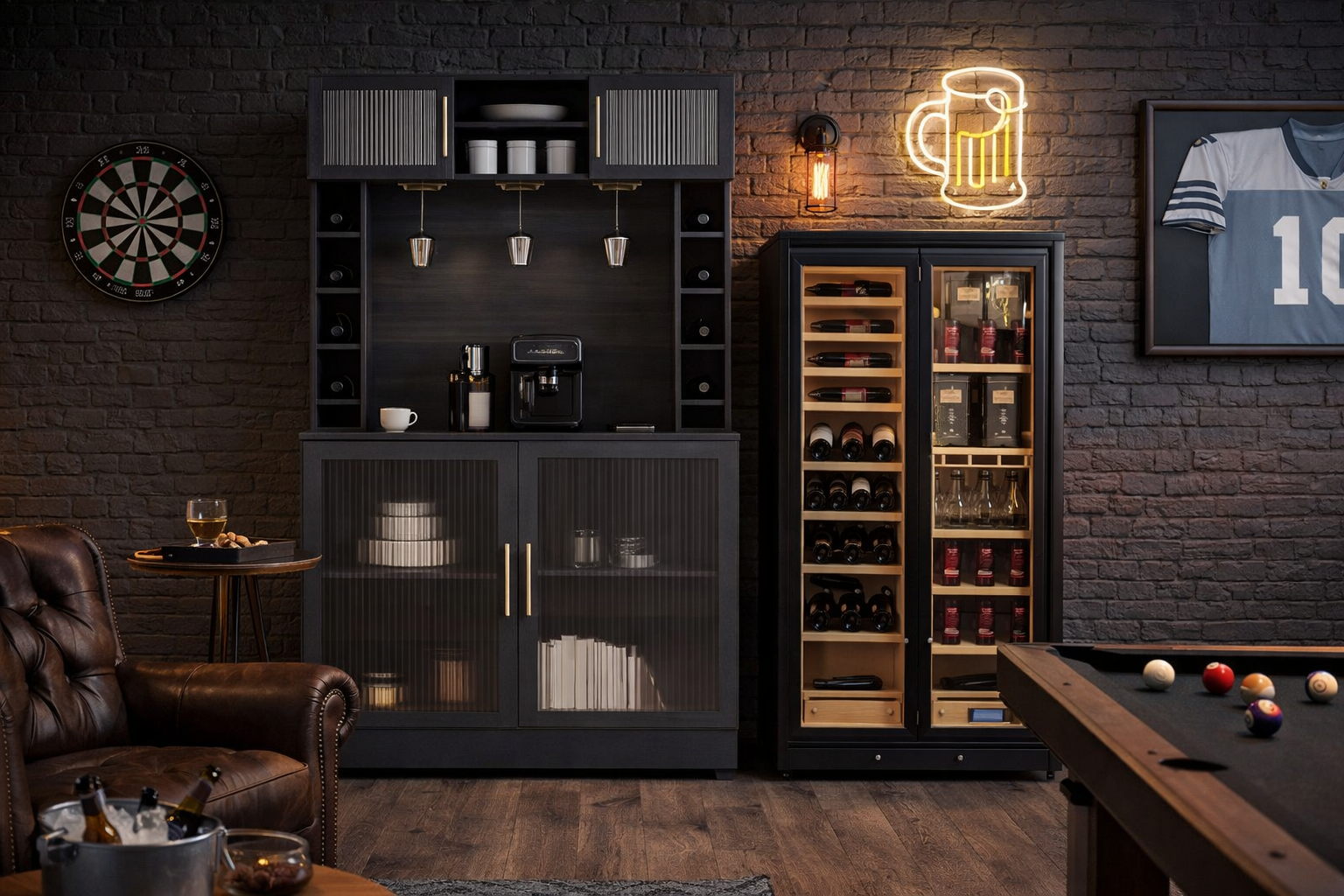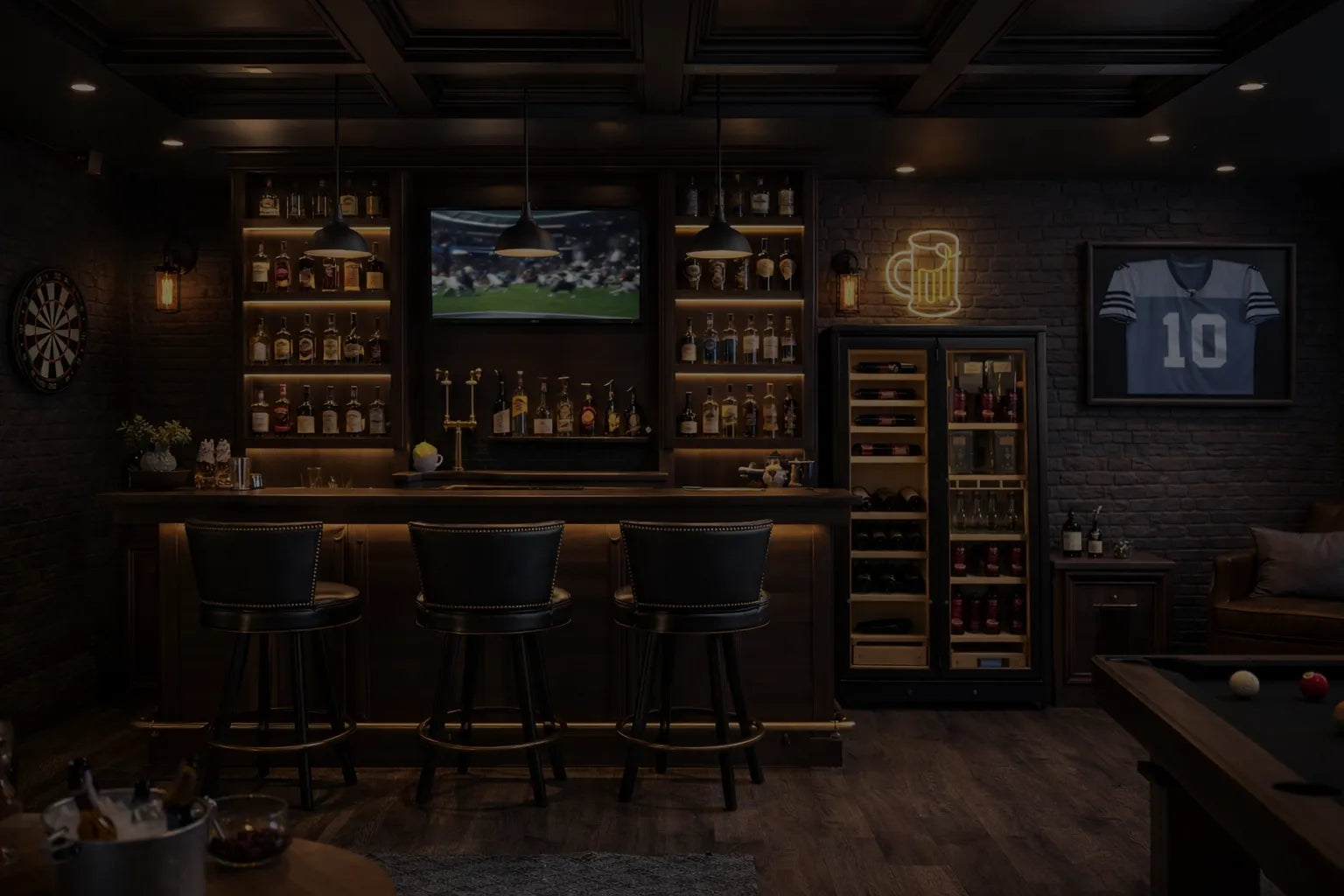 This is more than a room it’s a statement of taste, status, and timeless leisure. From the sleek pool table to the stocked bar and precision lighting, every detail is designed for men who’ve earned their retreat. Whether hosting, unwinding, or competing, this space reflects confidence, craftsmanship, and the lifestyle you lead.