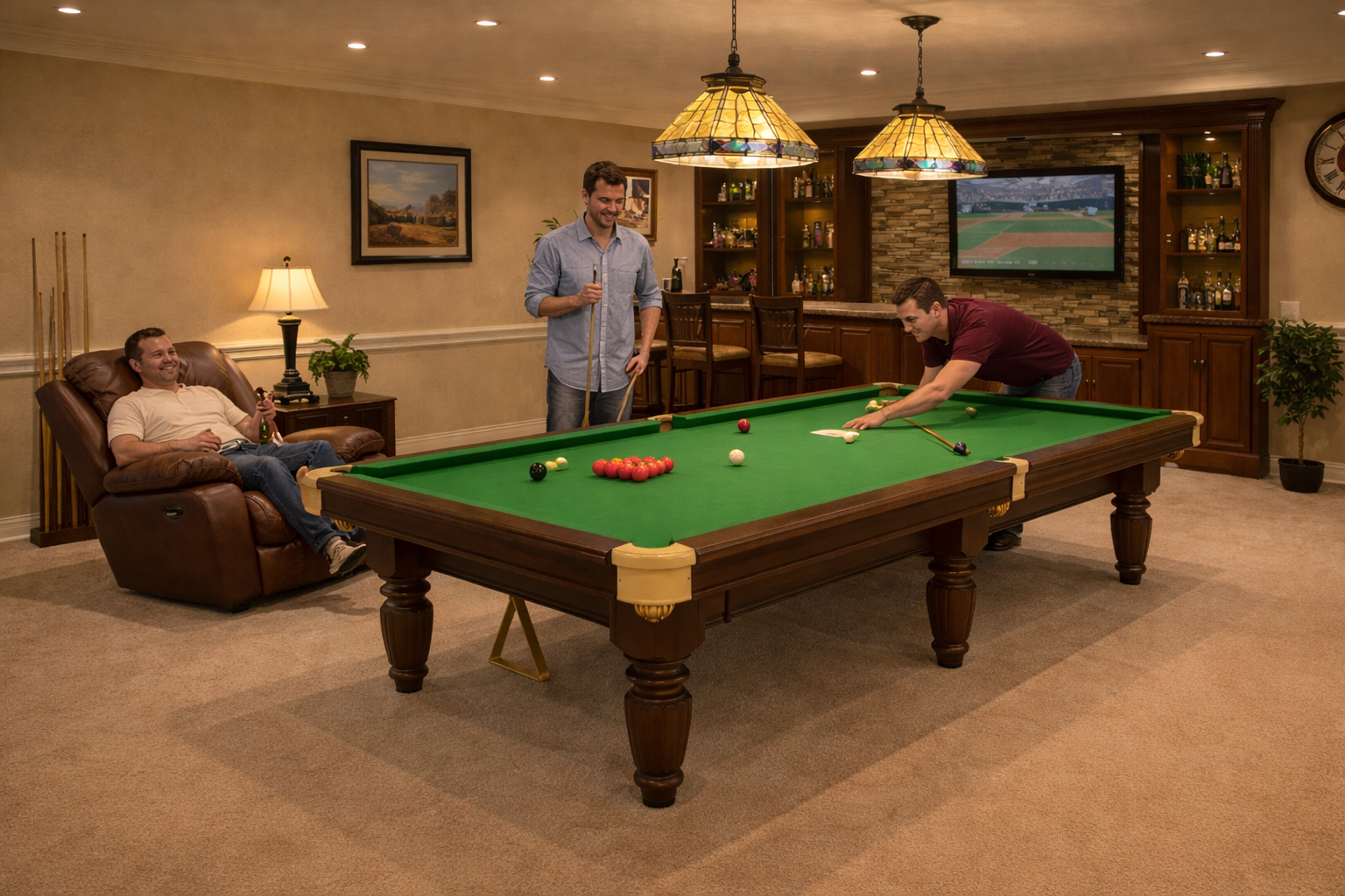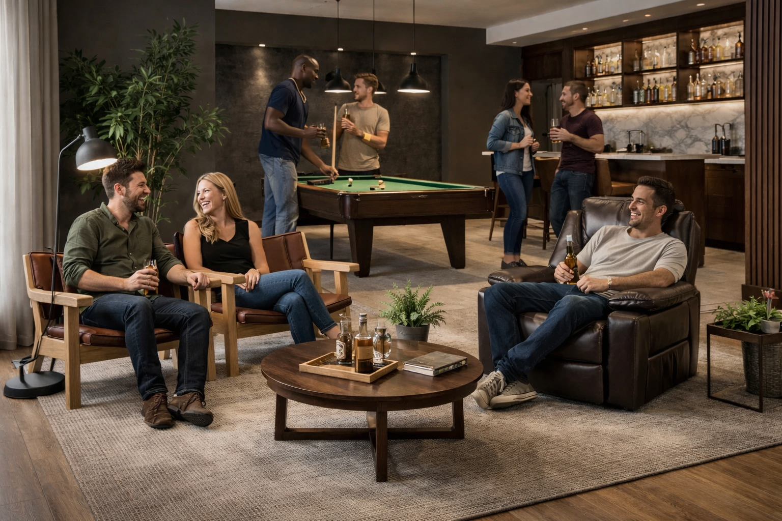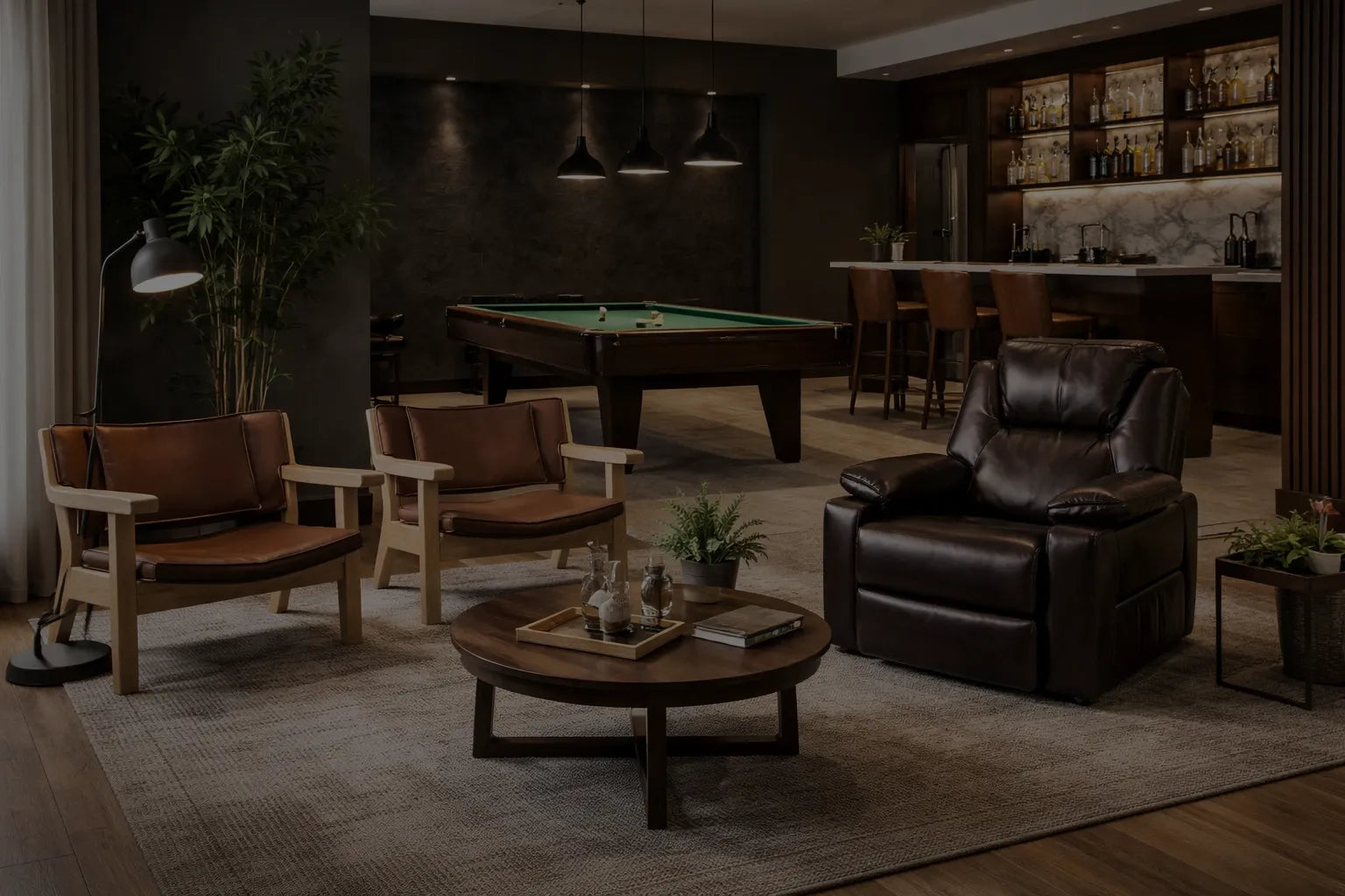 This is more than a room it’s a statement of taste, status, and timeless leisure. From the sleek pool table to the stocked bar and precision lighting, every detail is designed for men who’ve earned their retreat. Whether hosting, unwinding, or competing, this space reflects confidence, craftsmanship, and the lifestyle you lead.